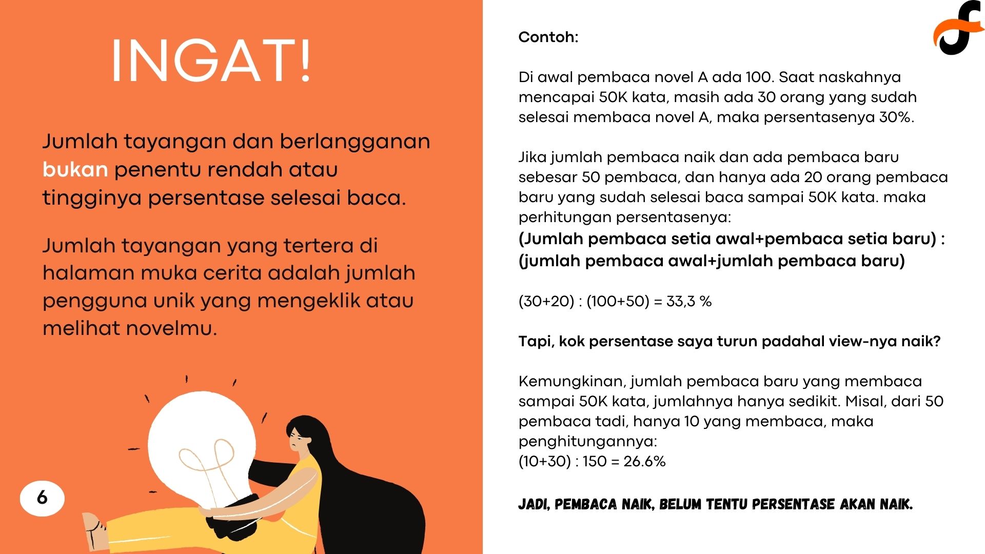 Melalui penguasaan penggunaan dasbor dan cara membaca data, para penulis pun akan bisa lebih memahami karyanya serta cara meningkatkan kualitasnya.